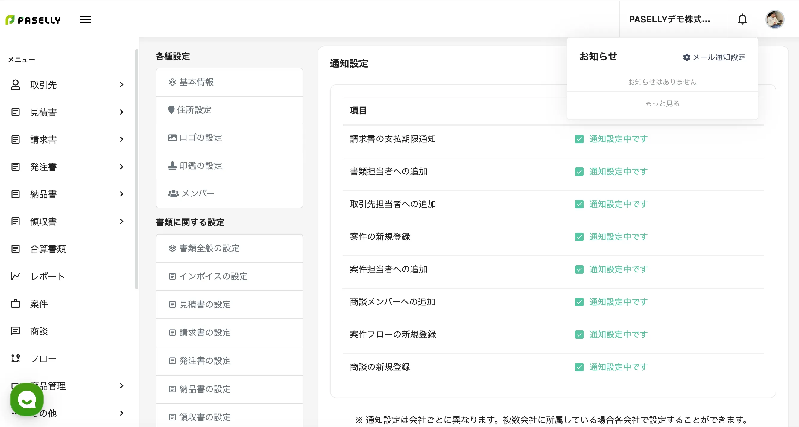 ※ 通知設定は「設定 > 通知設定」から変更できます。